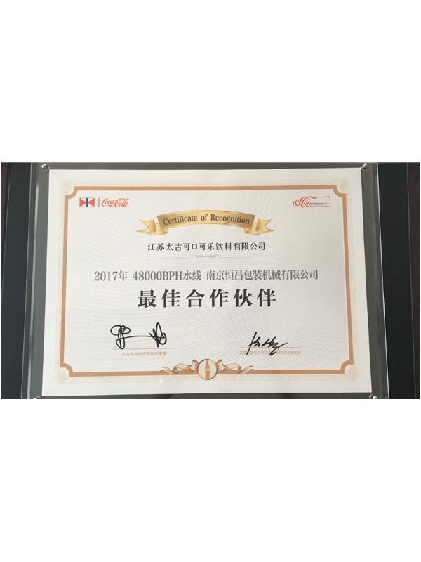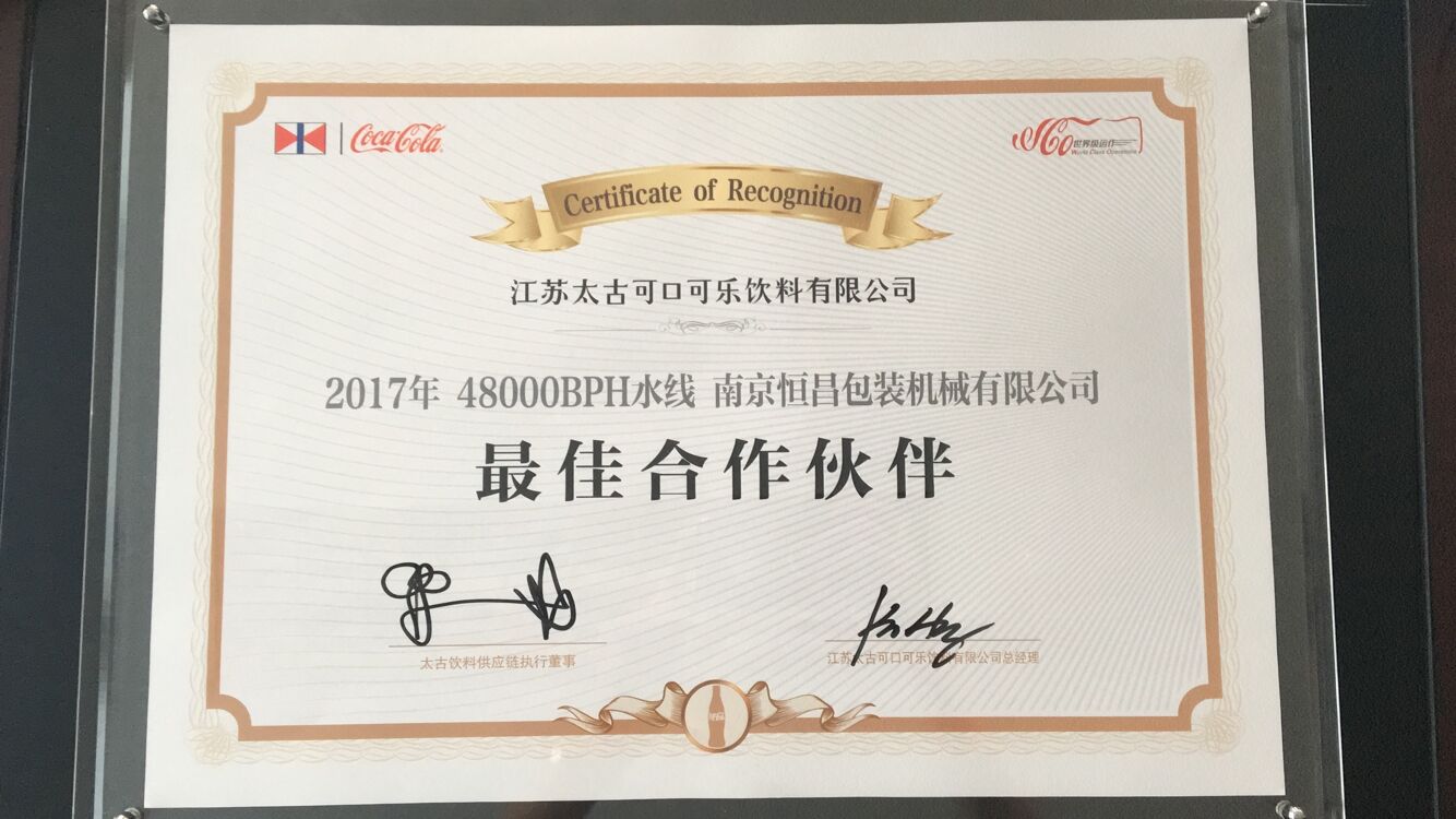 南京九洲官方网站-九洲jiuzhou(中国)包装作为后段整包商,在江苏太古可口可乐48000bph水线项目中获得“最佳合作伙伴”殊荣!